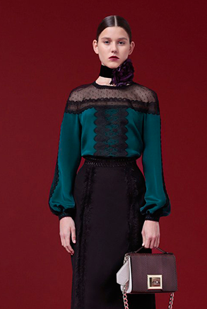 Главный акцент здесь — на цветовых плоскостях и их взаимодействии. Геометрия, пропорции и контраст создают выразительность образа, даже если крой остаётся простым и лаконичным.
