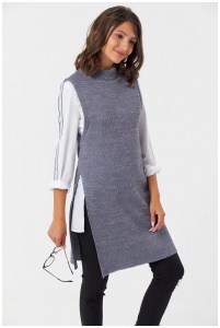Или как вариант, "не мудрствуя лукаво" ? – глухой, без застёжки удлинённый с достаточной свободой жилет с воротником типа "хомут". Наподобие таких силуэтов, например.