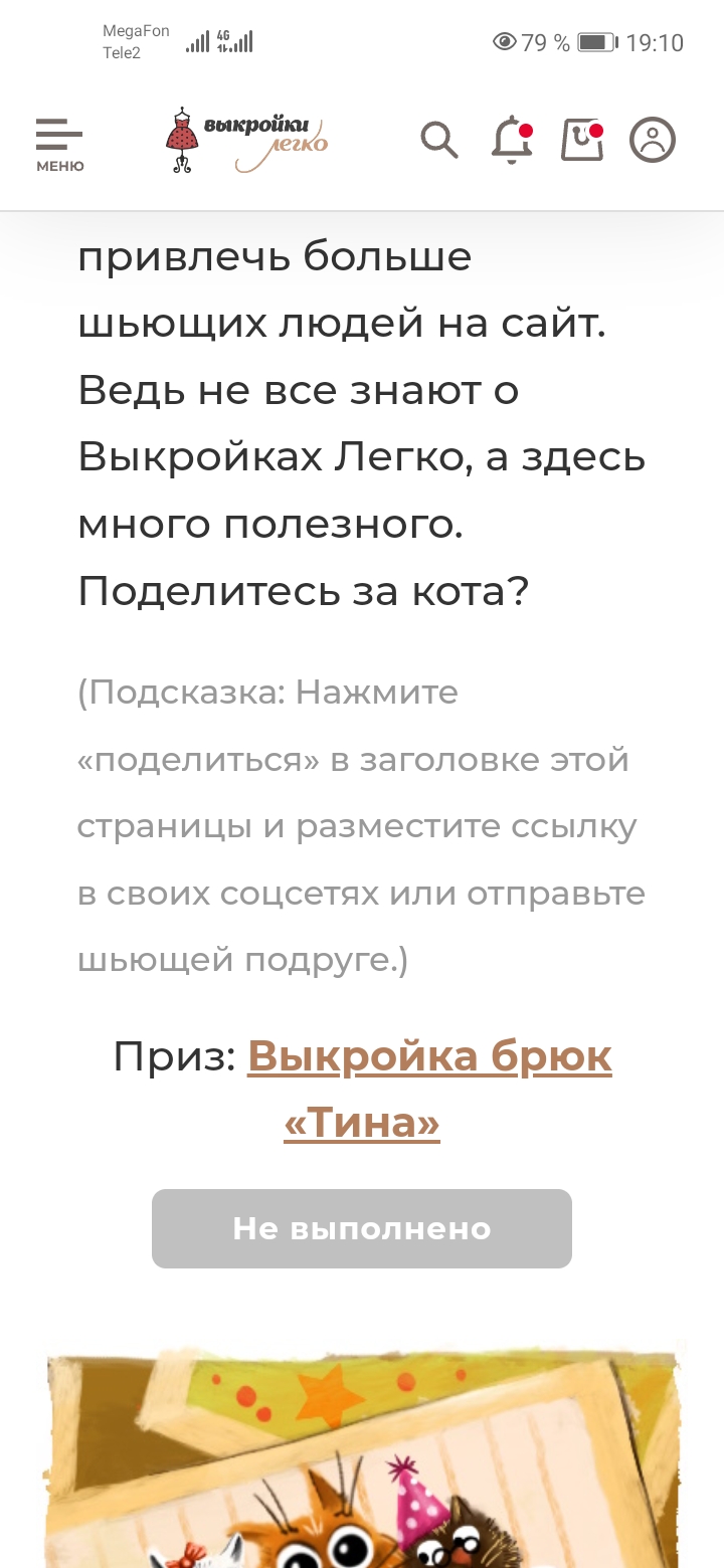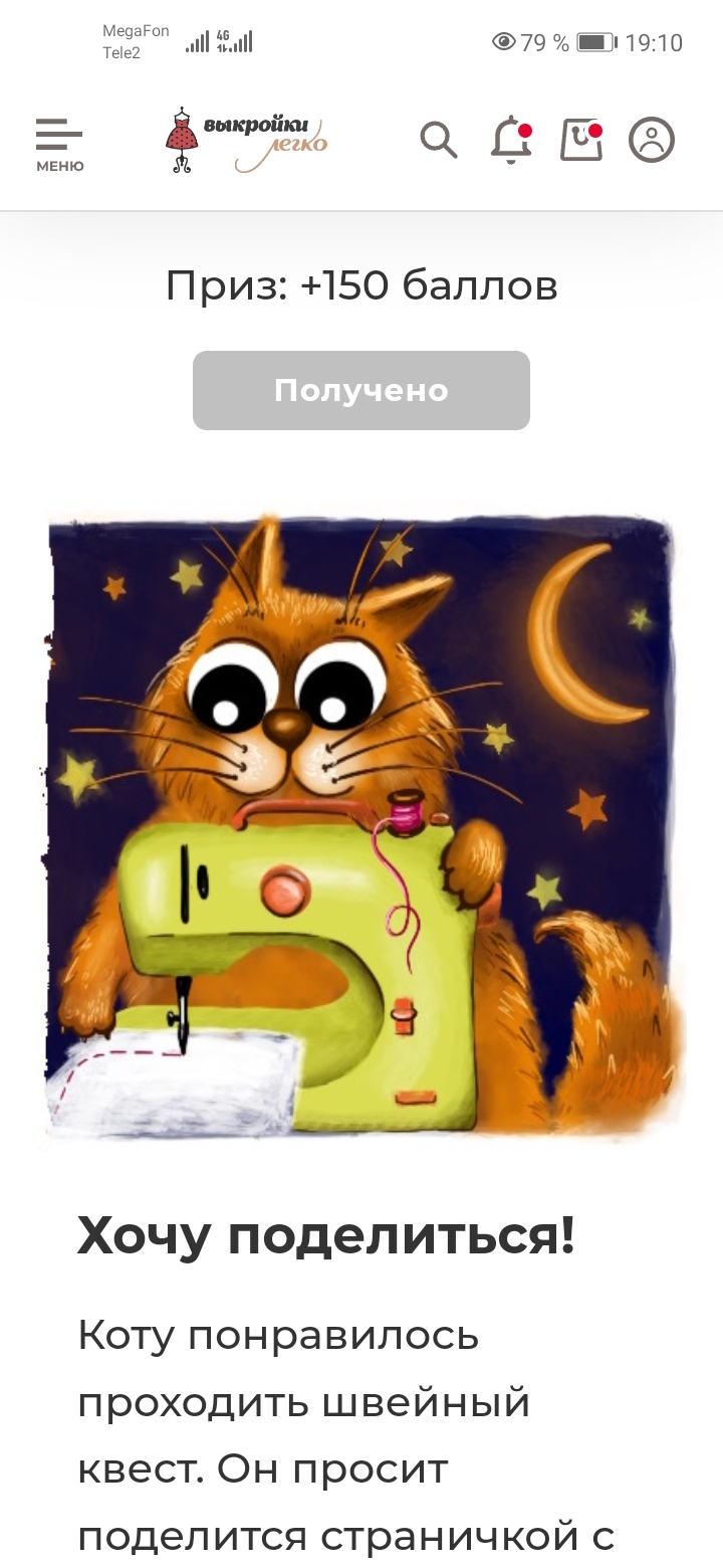 Прошла 6 заданий и почему то не получается 7е, где надо поделиться ссылкой на квест. Ссылку на своей странице в Контакте разместила, отправила в Телеграмм и Вайбер шьющим подругам, но пишут, что задание не выполнено. Объясните, пожалуйста, что не так? ? ?