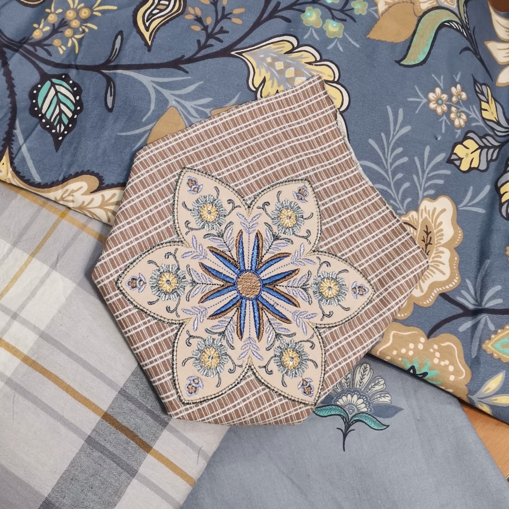 Я делала нашивки преимущественно из тонкого мягкого фетра (заявленная на упаковке толщина 1 мм). Но я их вышивала, а вышивка придаёт стабильности, и перед применением (притачиванием к изделию) я их нещадно простирывала вручную – жулькала и тёрла, стресс-тест устраивала так сказать, фетр выжил без проблем.