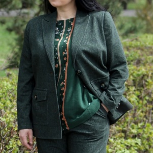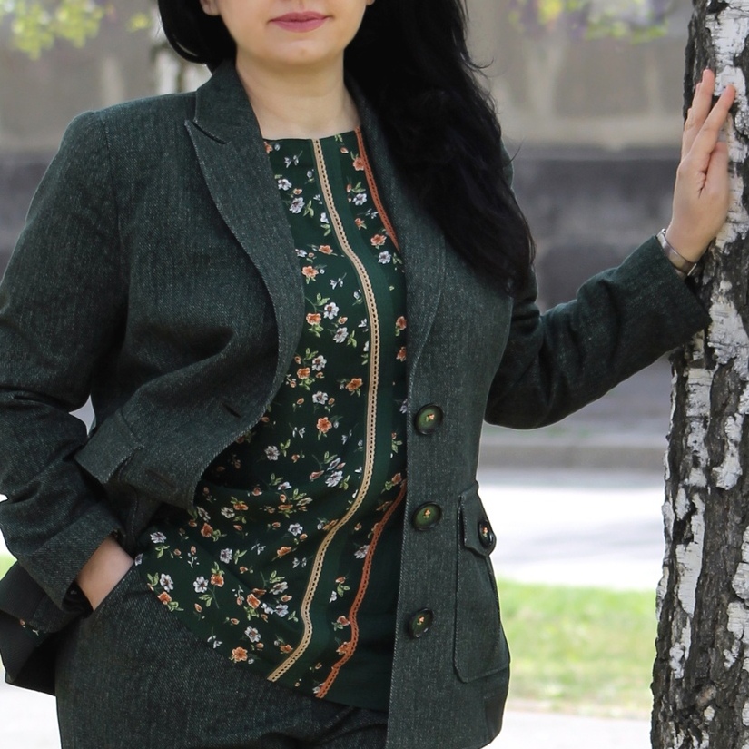 Ой, да на са́мом деле там нет ничего особенного интригующего – половина муслина, половина штапеля, но радует сам факт того, что две любимые и такие фактурно-разные летние тканьки ужились в одной вещи ?. Отдельных фоток блузы нет – так торопилась успеть с жакетом к завершению марафона, что не уделила ей должного внимания и не сфотала ?. Тут маленько видно – штапель цветастый, муслин однотонный, на стыках проложила кружева.