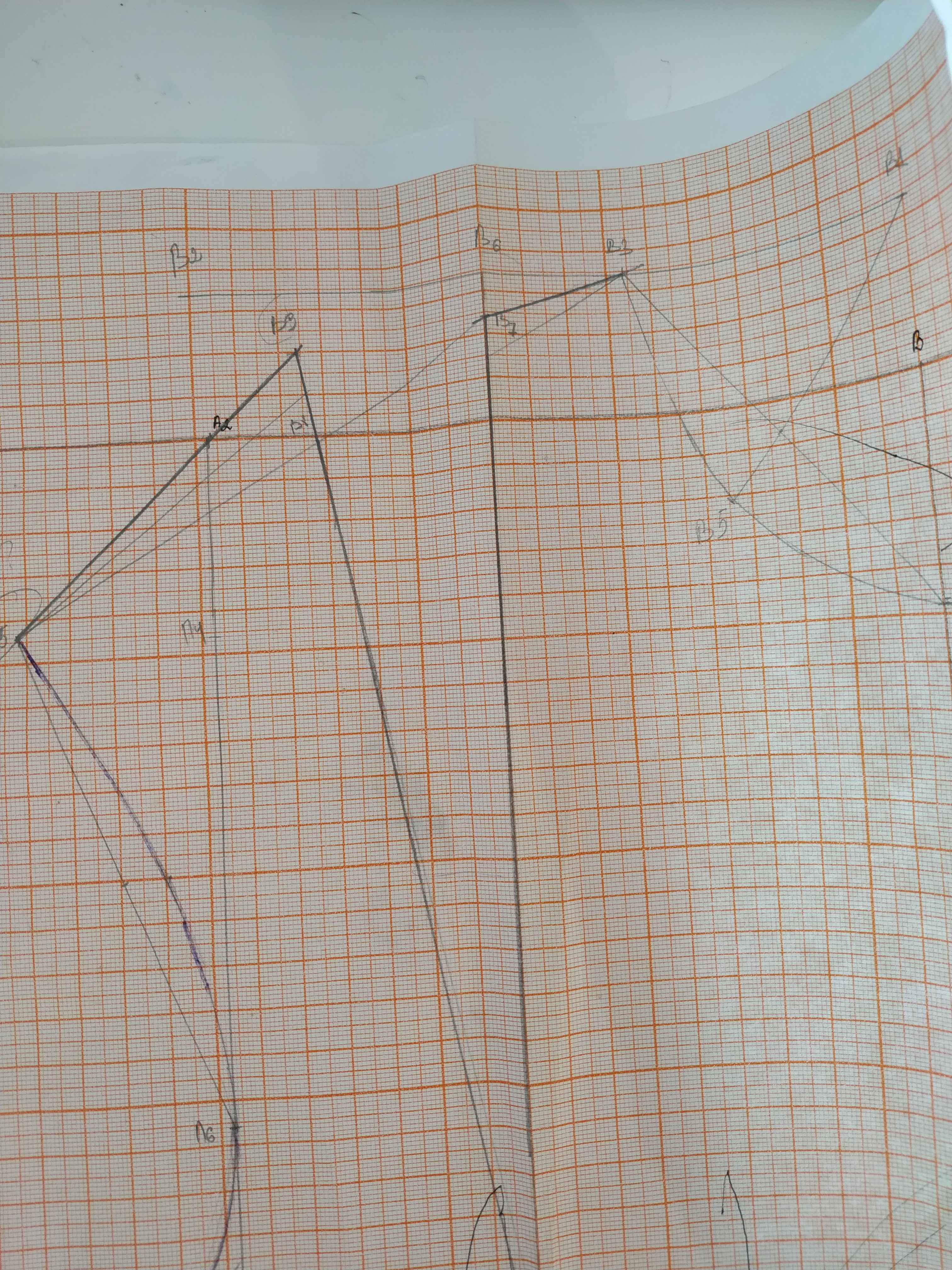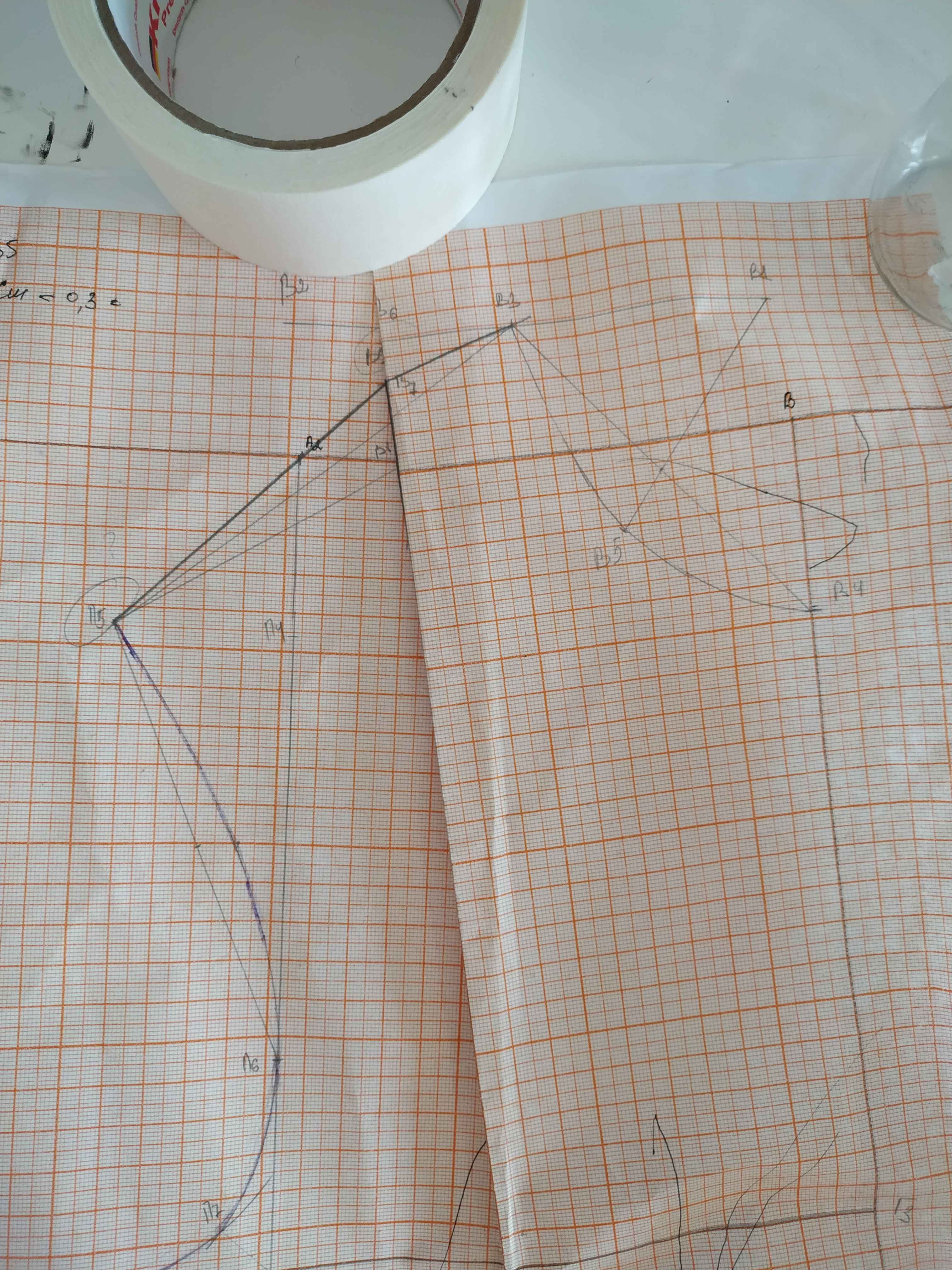 Начала строить перед ,а плечо при закрытии нагрудной вытачки изогнутое. Подскажите пожалуйста, что я не так сделала? Такое кстати со всеми мастер классами по построению базы происходит, а понять в чем дело не могу... Переснимала два раза мерки, всё правильно... Подскажите пожалуйста, уже давно мучаюсь с этой проблемой! ;(