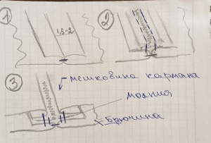 -вначале стачиваем боковой шов(полностью),припуски по боковому шву от верхнего среза и вниз примерно до линии бедра примерно см 1,5-2) и выполняя закрепки на входе в карман как сверху так и снизу