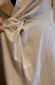 Ольга, здравствуйте! Подскажите, как Вы пришивали отлетную правую часть переда? Не пойму как она крепится. Часть верха к поясу, а часть пристрочена по линии сборки к левой части переда?