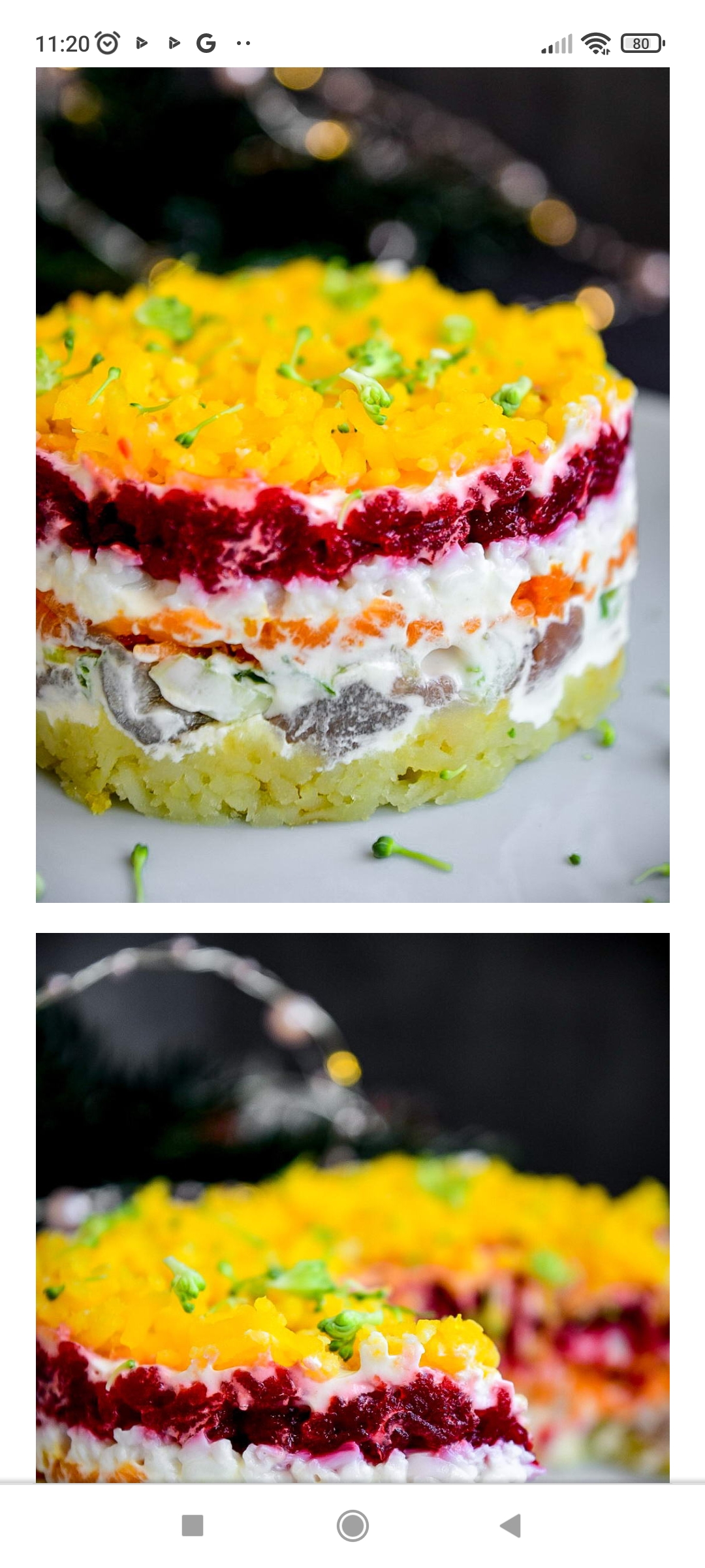 Любимый салат селёдка под шубой. Шубку делаю тонкую, из лучка и отварной свеклы. Обычно за столом много сытной еды, а салатик это мой любимый, поэтому и делаю его без доп прослойки.