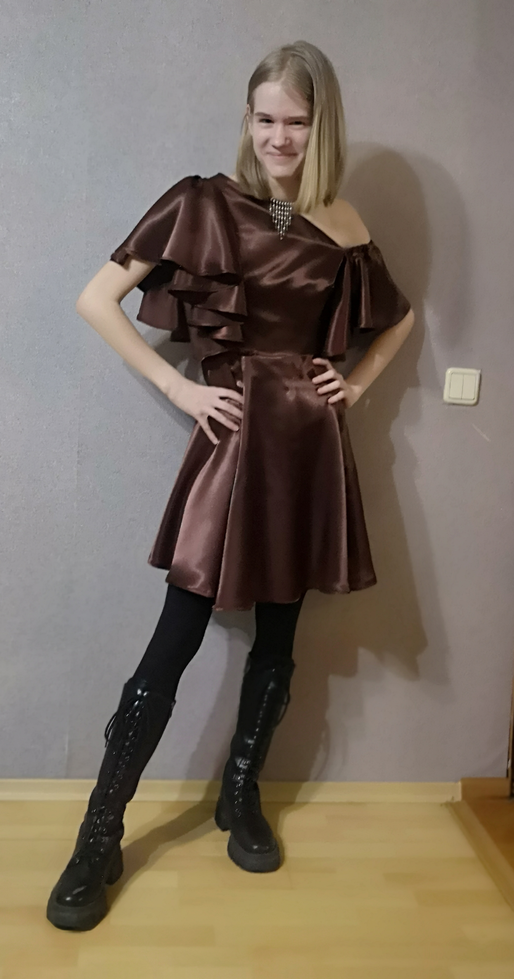 А я сшила обьемную юбку, на которую ушло невероятно много ткани. Сложнее всего было работать со складками и их распределением. Прикупила впоследствии специальную лапку. Работать стало намного проще.