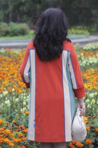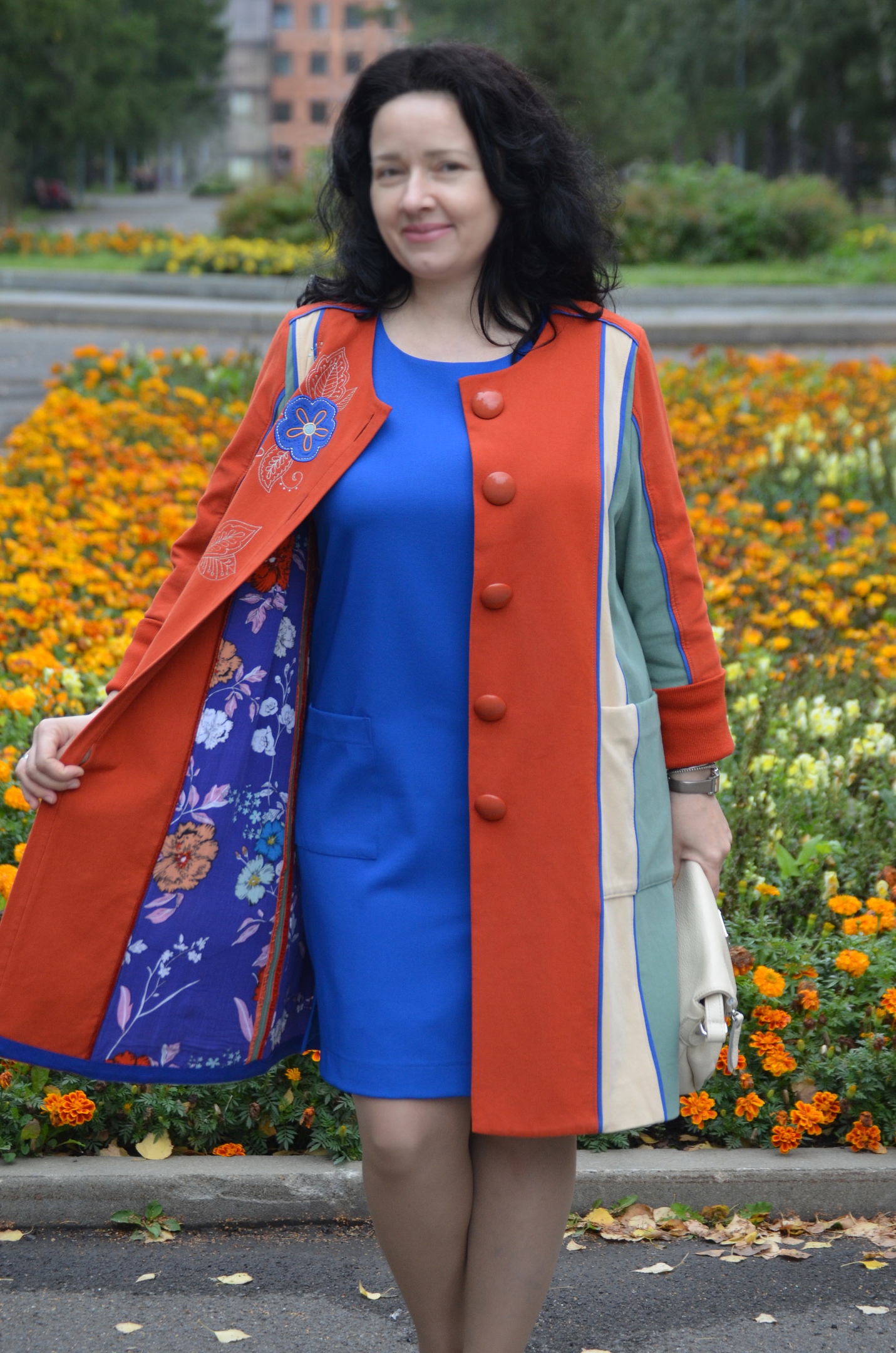 Не знаю можно ли в комментариях хвастаться – удалите, если что ?. Однажды поучаствовала на марафоне по колор-блоку, и, поскольку спортивные костюмы у меня не востребованы, сшила себе вот такой вариант колор-блока (пальто летнее из футера-двунитки):