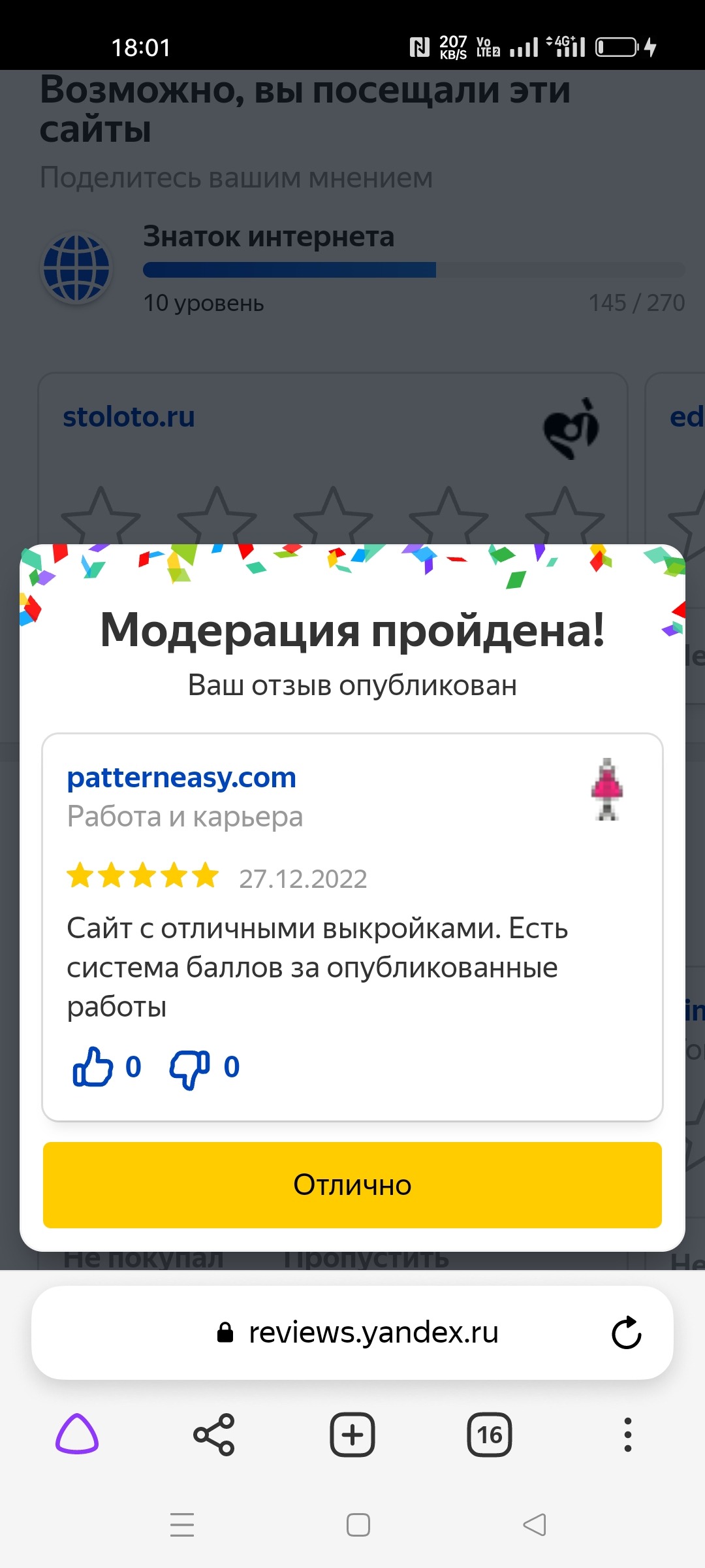 Сейчас можно написать отзыв и участвовать в розыгрыше годового запаса выкроек.