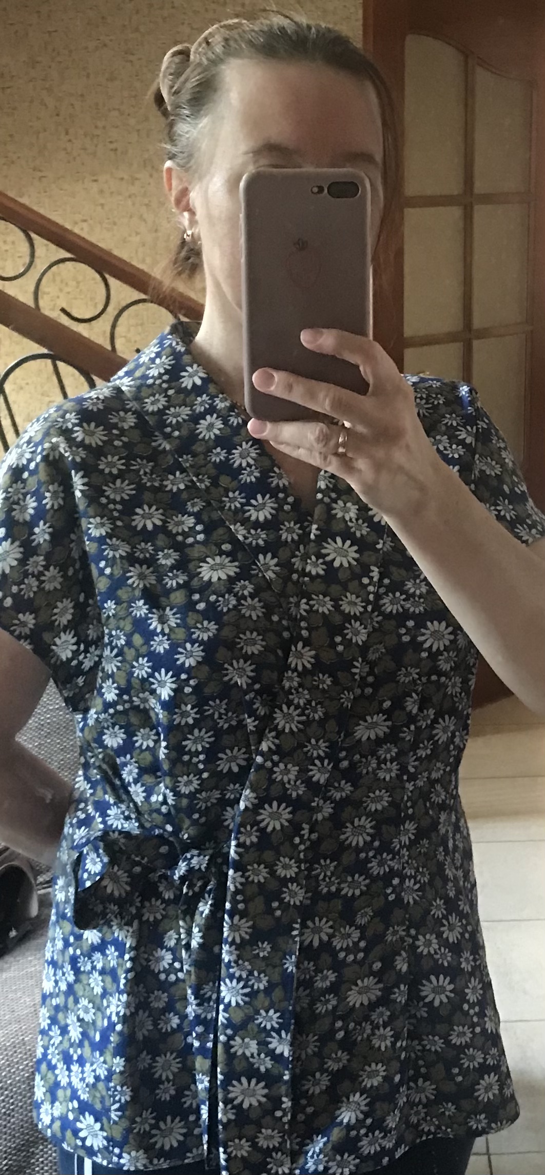 Добрый день! Блузку сшила: влюбилась в неё с первого взгляда. Некоторые моменты в описании пошива были непонятны, да ещё и шила без оверлока, пришлось продумывать по-своему обработку швов. Все швы закрыты, по низу - Московская подгибка. Фото сделала прям из-под машинки ?. Вдруг, кому-то интересно, как выглядит на большом размере. ?