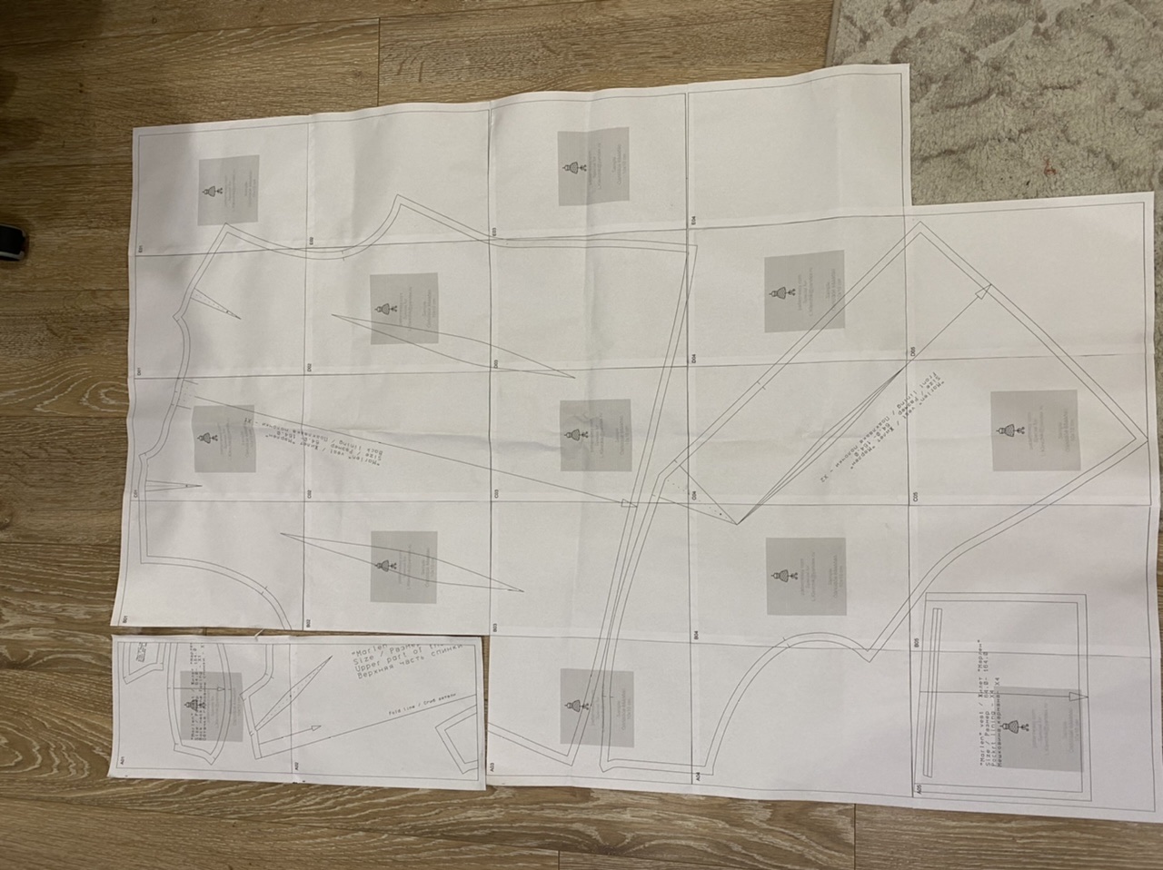 Похоже придется перекраивать весь верх, весь корсаж. Что-то подгадывать, пробовать, кроить и перекраивать. И явно искать ткань для докупки, либо не хватит на ярус юбки(