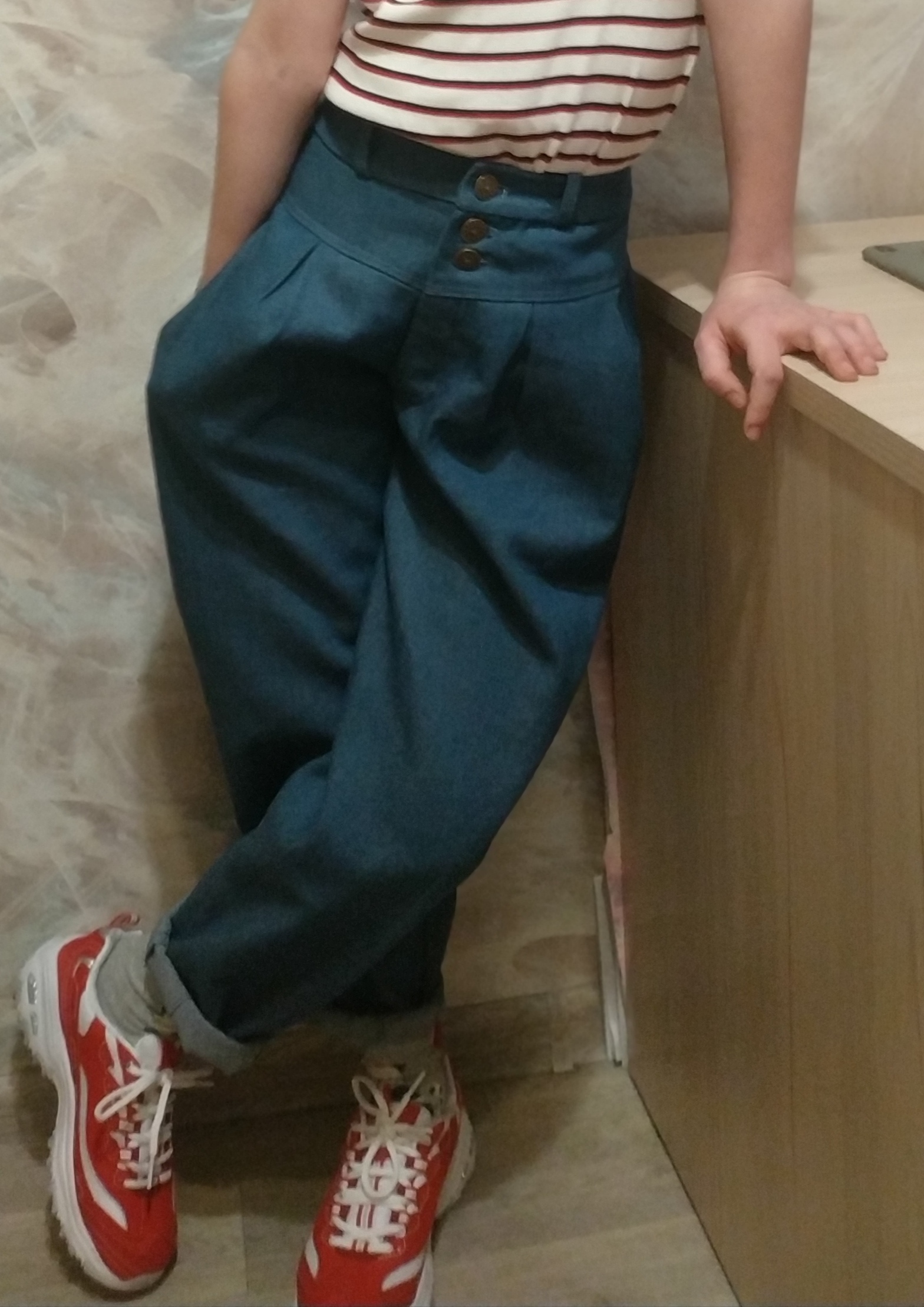 Добрый день! Хочется поделиться впечатлениями от пошива этих брюк.В пошиве трудностей не было. Все понятно, инструкция подробная. Но результат меня так огорчил, что даже фотографировать не стала. Получились штаны как у Чарли Чаплина. Жаль потраченных денег и времени. Брюки очень большеиерят при моем плотном телосложении я в них утонула. У меня размер 46 , выкройку брала 46 , рост 160.Так что у кого невысокой рост подумайте хорошо!!! Очень не рекомендую!!!!