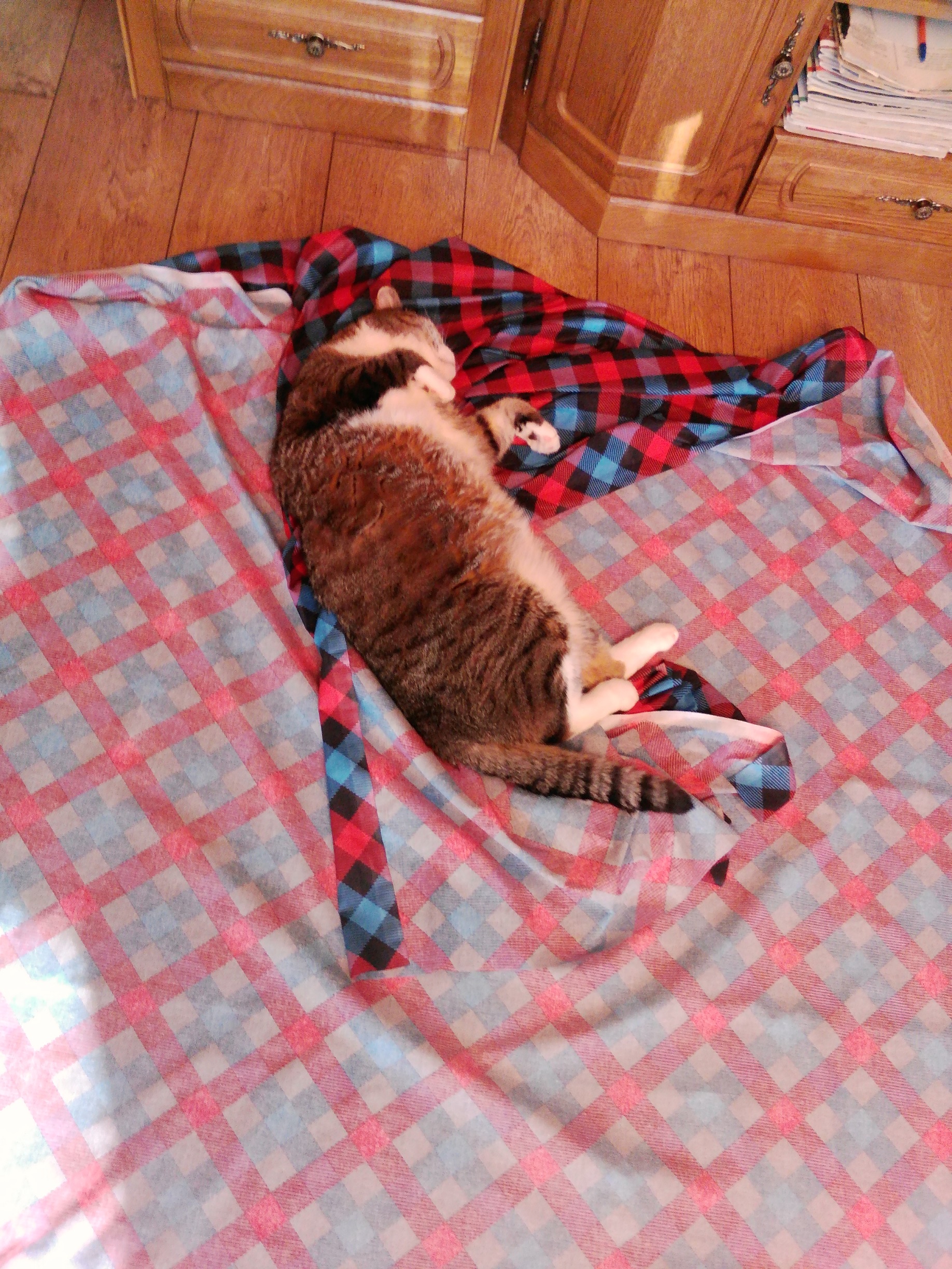 Что значит "Ты умеешь... и кроить даже на полу"??!!!!! Да я только на полу и крою! Очень удобно! Ткань в разворот и в полную длину! А ещё мне при таком способе раскроя коты помогаю! И выкройки склеивать тоже.)))