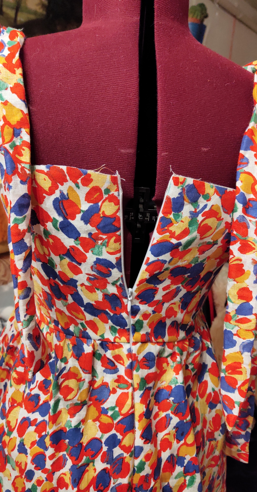 Добрый день. Что-то не подружилась с вашим сарафоном с корсажным верхом. Увы-увы. Давно на него смотрела, мечтала. Выкроила из мягкого итальянского льна, конечно с прибавками. Но в груди безбожно мало. Хотя посмотрела по таблице (грудь 92, и у меня 92см), должна была войти. И судя по форме, выкройка на плоскую грудь((((. Не хватает почти 6см в обхвате груди для комфортного дыхания и носки. Как же так? И это при том, что я мерила еще в однослойном виде, внутреннюю часть не вышивала ещё. Эх-хех. Грусть-печаль...