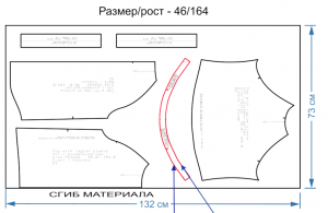 1) Вам нужно раскроить 2 детали со сгибом по верхнему краю детали. Если вы хотите обработать подкладкой, тогда нужно заменить "сгиб" на припуск обтачивания - 1 см. Соответственно: 2 детали из основного материала и 2 детали из подкладочного материала ;