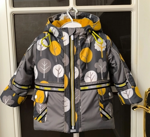 Что в итоге: полочки, планка на спине и манжеты скроены под 45°, остальное - по прямой.
