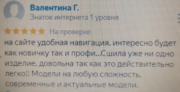 В этом году я исполнила свою мечту и прошла обучение в студии Шитья. Сшила юбку, брюки и платье. С октября шью самостоятельно : сшила два банных халата по выкройке "Такеши" и новогоднюю скатерть. В планах реализовать в изделия все купленные ткани!!! Спасибо сайту "Выкройки легко" с вами легко, быстро и вдохновляюще творить изделия!