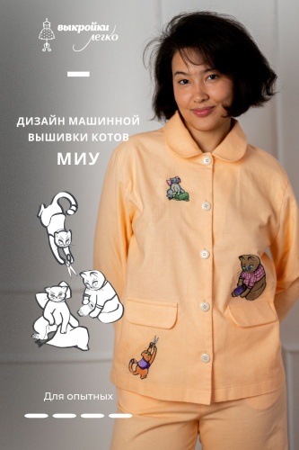 Готовая выкройка пижамной рубашки. Коллекция с котиками «Миу»