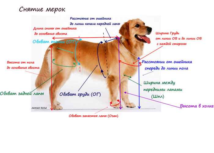 1. Снимаем мерки с собаки, только в положении стоя.