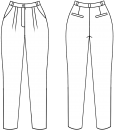 8. Строго по меткам заколите складки по верхнему срезу передних половинок брюк, проложите строчку-закрепку. |