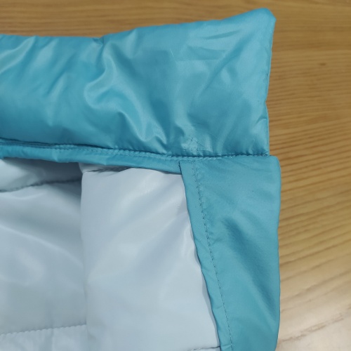 Обработка плечевых срезов8. Совместите плечевые швы спинки и полочки, сметайте, затем наложите бейку со стороны полочки выровняйте срезы и также приметайте её, проложите строчку шириной 10 мм, срежьте синтепон, ширину шва срежьте на 2-3 мм. шов приутюжьте. |