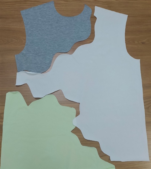 Подготовка передней части футболки1. Лицевой стороной вверх разложите детали переда: верхнюю, среднюю и нижнюю части. |