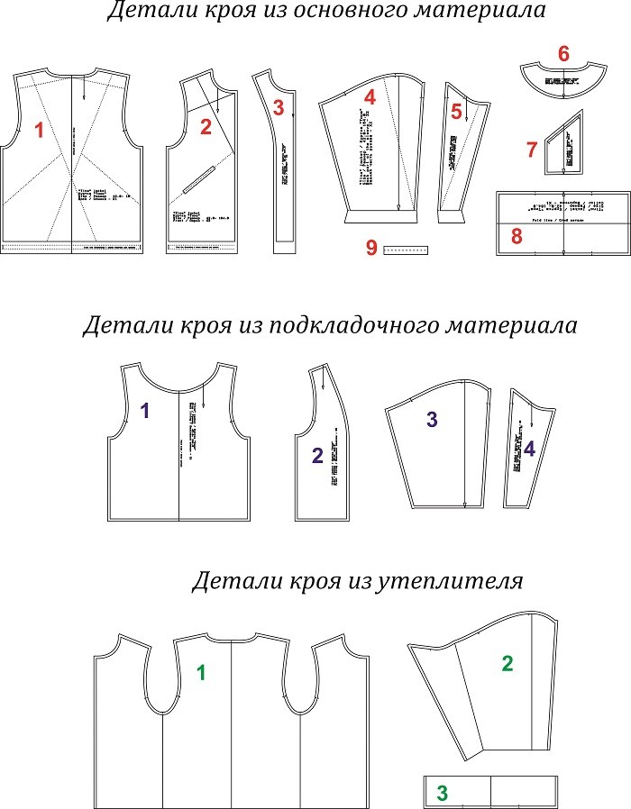 - Мешковина кармана — 4 детали или 2 (2 из подкладочного материала).