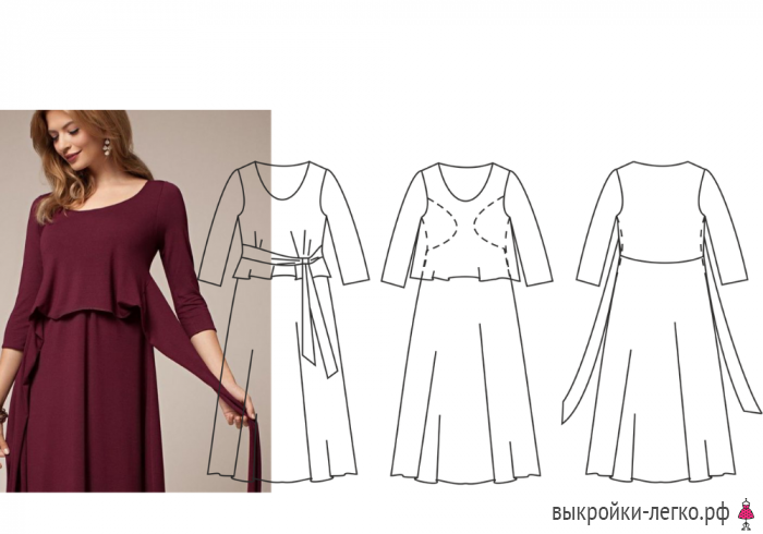 Моделировать платье следует на выкройке-основе из трикотажного полотна. У нас на сайте есть такая. Так же я описывала в этой статье, как построить выкройку трикотажного платья по вашим меркам, или воспользуйтесь любой другой, имеющейся у вас.