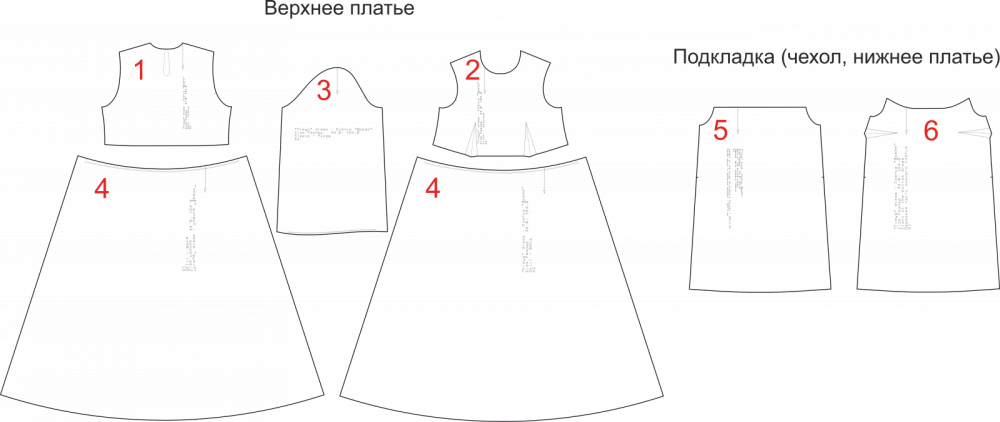 - по нижнему срезу верхнего платья 1 – 1,5 см на шов, плюс 3 см на подрезание (выравнивание);