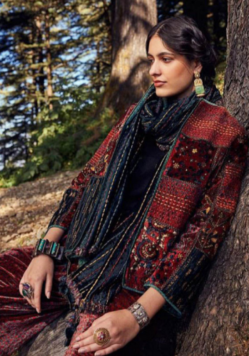 Основной материал (для верхнего платья) – из группы плательных тканей, содержащих натуральные и (или) шёлковые волокна и нити гладкокрашеный или с рисунком очень тонкий (прозрачный): шифон, вуаль, батист и т.д.