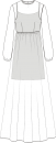 Платье женское двуслойное, изготавливается из материалов компаньонов. Верхнее (основное) платье – отрезное по линии талии, талия завышена. Полочка с вытачками от линии талии. Спинка с вырезом «капелька» по срезу горловины. Юбка платья покроя «полусолнце» по линии талии собрана эластичной тесьмой «резинка». Срез горловины обработан косой бейкой, застёгивается на навесную петельку и пуговицу. Рукав втачной, одношовный. Нижний срез рукавов собран на эластичную тесьму «резинка». Нижний срез юбки обработан швом в подгибку с закрытым срезом. Нижнее платье (подкладка-чехол) – прилегающего силуэта, выше линии колен не отрезное по линии талии на бретелях. Полочка с вытачками от бокового шва. Спинка без формообразующих элементов. Срезы пройм, а также верхние срезы полочки и спинки обработаны косой бейкой.