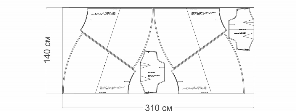 Схема раскладки из ткани без направленного рисунка, размер 42/164