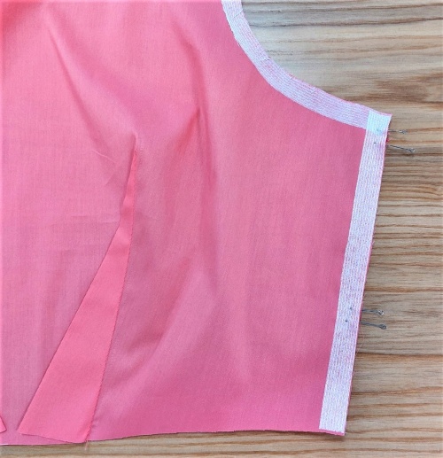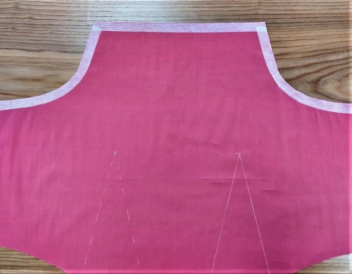 1. Укрепите припуски горловины и проймы лифа клеевой кромкой; |