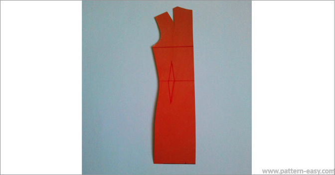 5 Отступив 3 см проводим две рассекающие линии: одна к плечевой вытачке, вторая – к пройме. Вот так:
