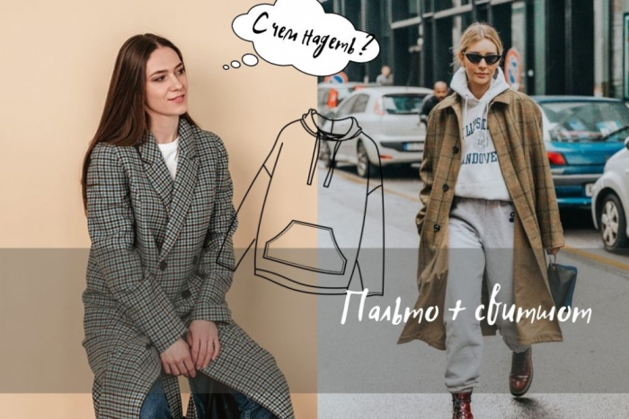 Самый непринужденный вариант для любителей спортивного стиля. Пальто плюс свитшот с капюшоном выглядит уже не ново, но зато ярко, стильно, молодежно. Я сама в прошлую осень часто надевала пальто именно с яркими свитшотами. Это самый любимый мной образ. Хорошо, что обзавестись новым свитшотом не проблема, можно купить любого цвета. А еще лучше сшить!