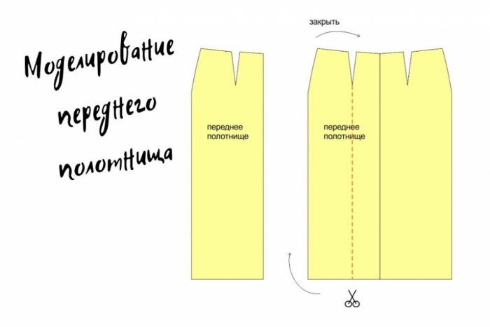 - поверните части выкройки таким образом, чтобы вверху вытачка закрылась и открылась внизу