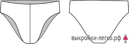 - Выкройка трусиков-танга повторяет моделирование трусиков-бикини с одной лишь разницей - боковые швы 2-3 см, а могут отсутствовать вовсе - их заменит резинка, которой обработан верх трусов.