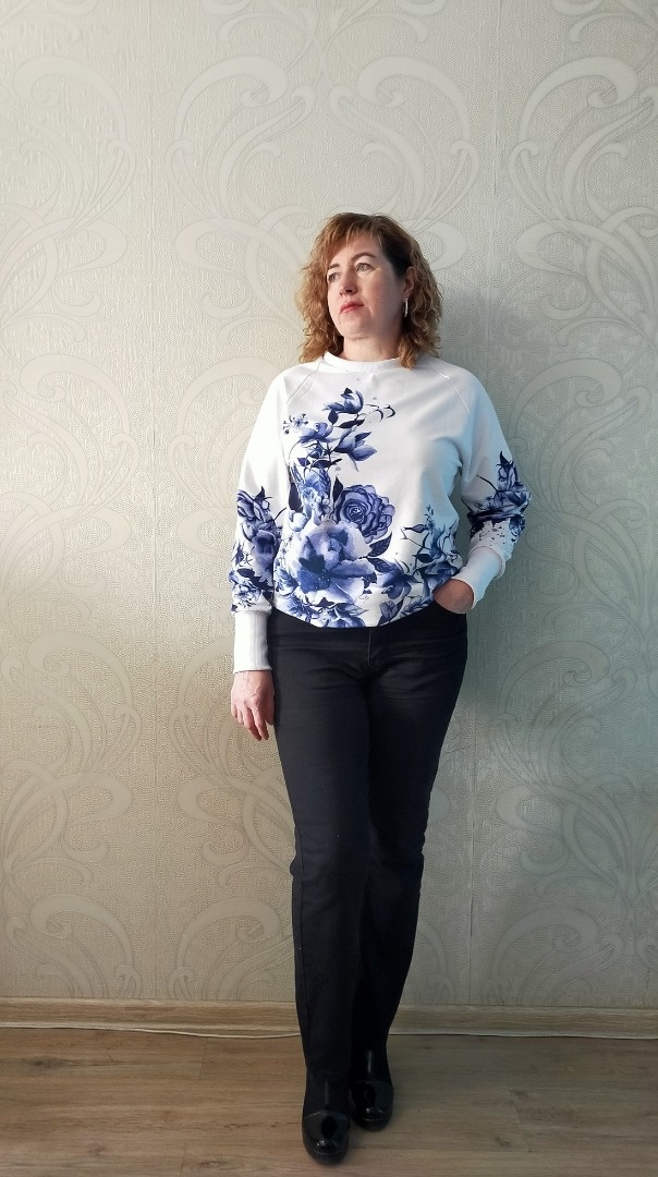 8 Марта на улице весна, но на улице живых цветов еще нет. Вот вот только проклюнулись первые подснежники и распустились цветы на моем джемпере. Джемпер сшила легко и быстро. Рекомендую к исполнению. Джемпер сшит из футера 2 -нитки купон. На всю длину рукава трикотажа не хватало и недостающую длину я добавила к манжетам. Манжеты, горловина и низ изделия обработаны кашкорсе.