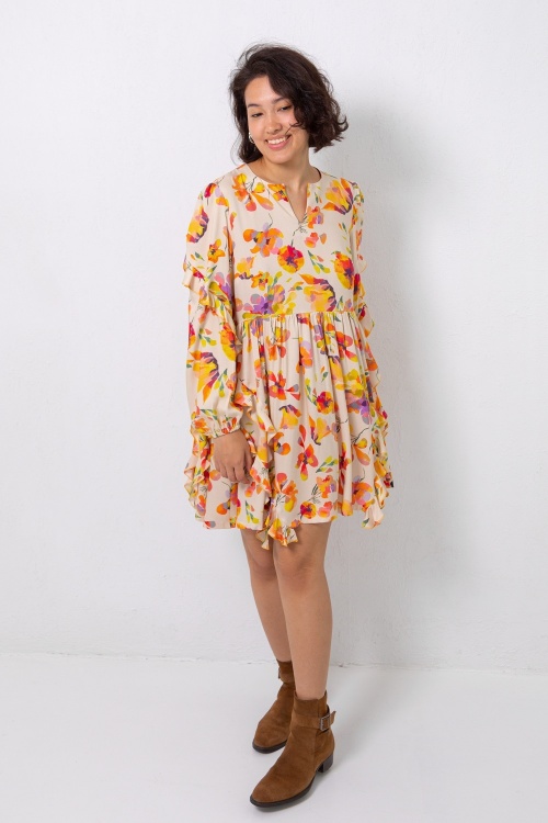 21. Проведите окончательную ВТО (влажно-тепловую обработку) изделия. Платье с оборками «Дина» готово! Если во время пошива возникнут вопросы, задавайте их в комментариях. Буду рада помочь! Поделитесь фото сшитого платья на Фотофоруме.