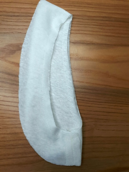 7. Выверните, выправите край и выметайте край,также как край окантовки горловины. Приутюжьте. |