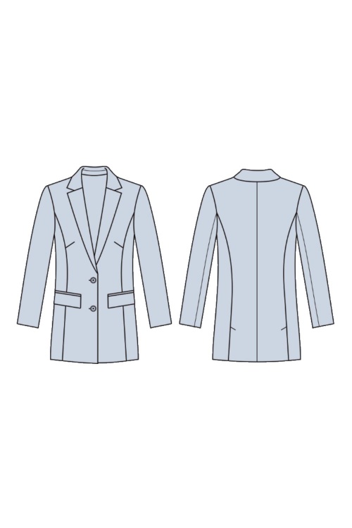 В зависимости от размера и роста выкройки, а также ширины материала, вам потребуется от 1,7 до 2,3 м основного материала и около 1,5 м подкладочной ткани, при ширине не менее 1,4 м.