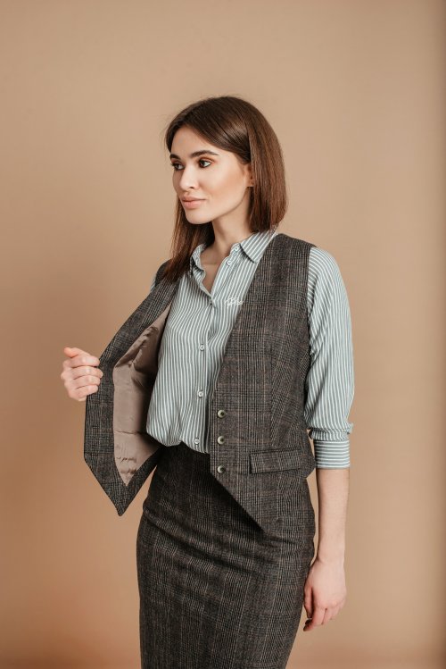 - основной материал - костюмные, костюмно-плательные ткани без растяжения или с небольшим растяжением. Ткань должна хорошо формоваться и поддаваться ВТО (влажно-тепловой обработке). По волокнистому составу может быть - натуральной (хлопок, шерсть); смесовой (шерсть с добавлением кашемира, вискозы, нитрона, эластана, полиэстера); синтетической (полиэстер, габардин).