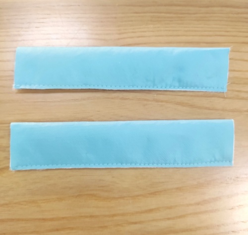 2. Лицевыми сторонами внутрь сложите детали стойки, под низ положите деталь из синтепона. Сколите по трем сторонам, сметайте. Стачайте шириной шва 10 мм. |