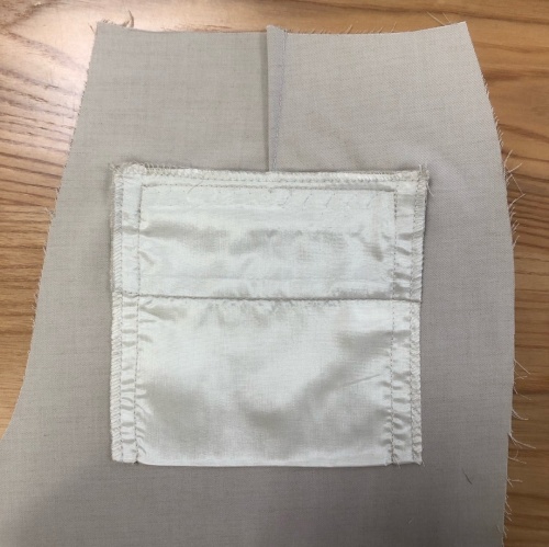 18. Настрочите на припуск листочки нижний срез мешковины кармана. |